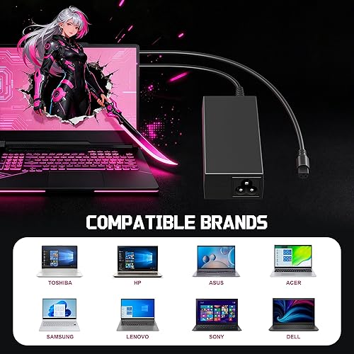 Universal Compatibility:The smart chip automatically adjusts the voltage. With 15 included tips, this adapter works with most laptops on the market, including models from Dell, HP, Acer, Asus, Lenovo, and others. Simply find the tip that fits your device, and you're ready to go.