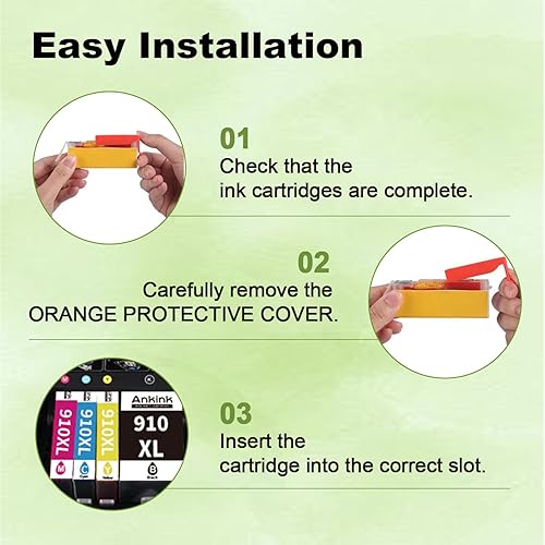 Higher compatibility : Ankink 910 XL combo pack ink cartridges with the smart chip technology compatible for “ H P + ” service, work well with *e series printers, ensuring efficient recognition and stable printing