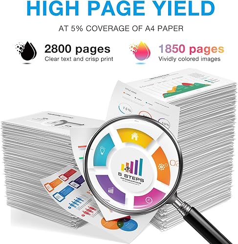 【Page Yield】: t yields up to 1,000 pages for each 923XL Black Ink and 800 pages for each 923XL Color Ink at 5% coverage (A4e letter).