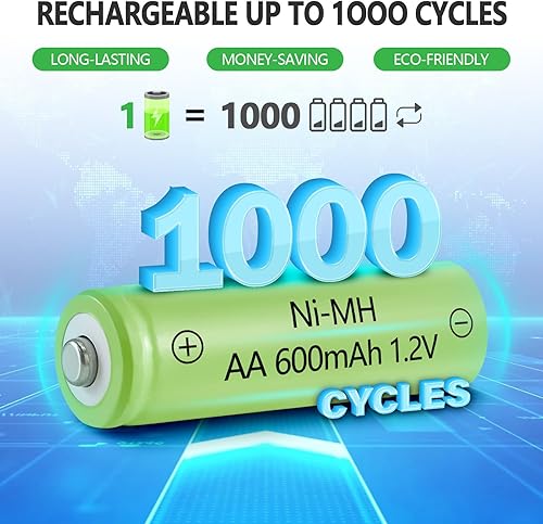 【Recycle and money-saving】: Solar lights aa batteries can be constantly recharged 1000 times, saving you money on purchasing one-time use disposable alkaline batteries.