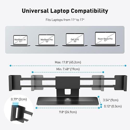 AboveTEK Laptop Locking Station, Premium Aluminum MacBook Security Lock with High-Security Copper Cylinder, Anti-Theft Computer Lock for All 11"-17" No-Slot Notebooks, Non-Slip Base for Public Spaces(Black)