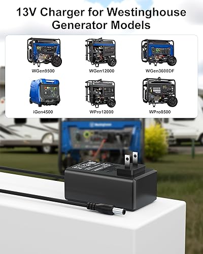[Product Details] Fits westinghouse generator charger features universal AC input ranging from 110V to 240V, making it suitable for use worldwide. It delivers a stable output voltage of 13V, ensuring efficient charging. Additionally, the power cable extends up to 5.9 feet, providing ample reach for convenient use