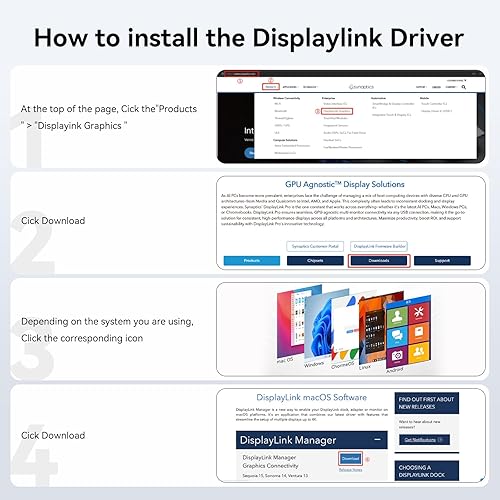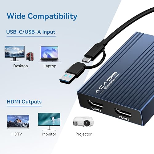 【DisplayLink Technology + Driver Required】Unlike basic HDMI adapters, this uses advanced HDMI dual monitor adapter tech to extend screens without relying on your laptop’s native video output. Works with macOS & Windows—just install the driver (download link included). Note: Unplug only when the computer is off.