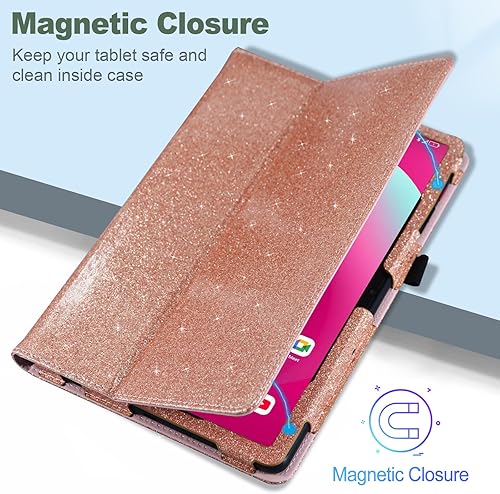 ACdream Case for T-Mobile Revvl Tab 2 10.1" Tablet 2025 Model:9185W(NOT FIT 2023 Revvl Tab 5G 10.36"), Folio Protective Slim Cover Leather Case, Magnetic Closure, Hand Strap, Card Slots, Glitter Rose