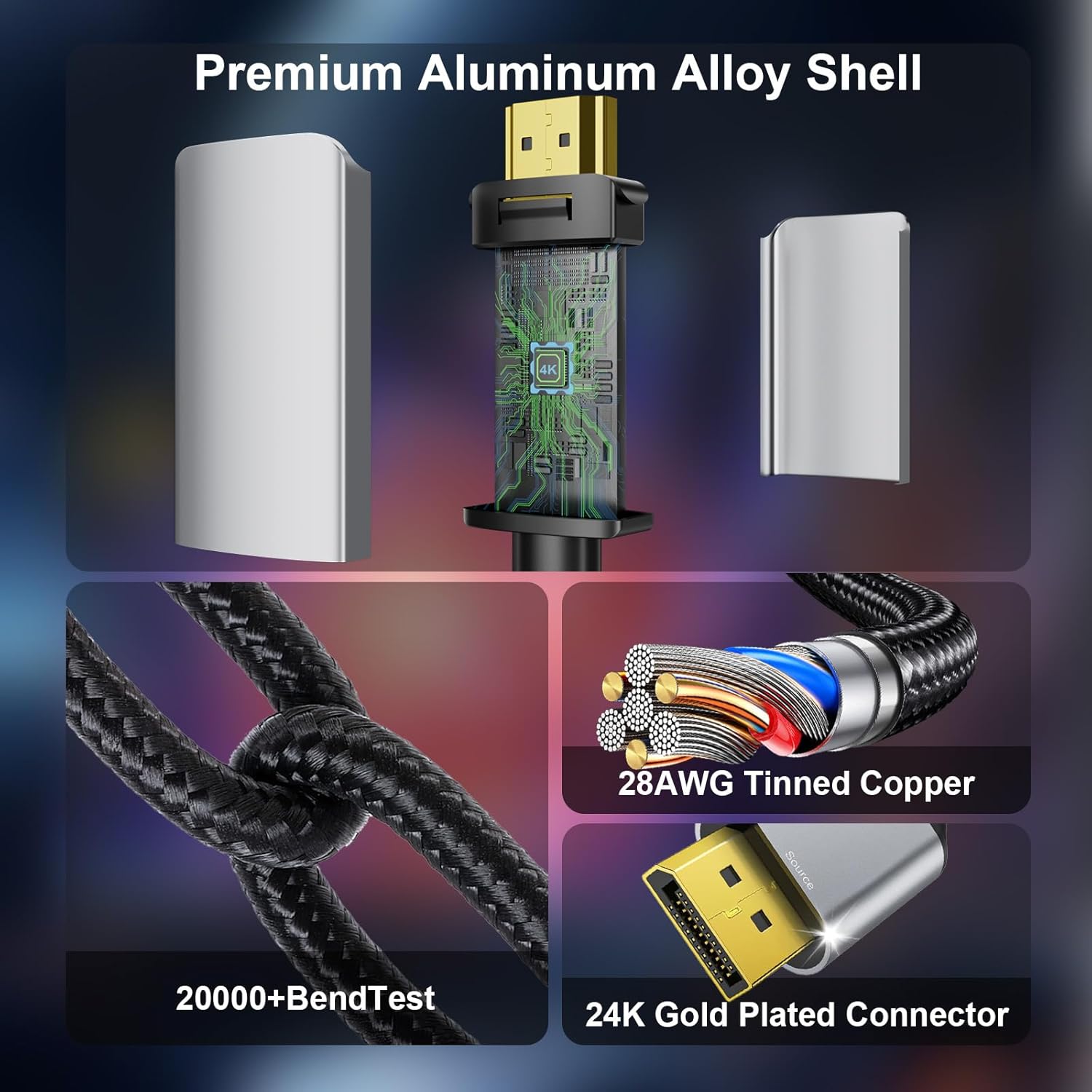 【Stunning 4K UHD Picture Quality, Immersive Audio-Visual Experience】 Enjoy breathtaking 4K@60Hz ultra-high-definition resolution and smooth refresh rates. The HDMI to DisplayPort cable delivers exceptional visual clarity and detailed performance. Simultaneously supporting lossless audio transmission, it creates a true cinema-grade audio-visual experience. The product is backward compatible with 1080P@120Hz resolution, catering to diverse usage scenarios