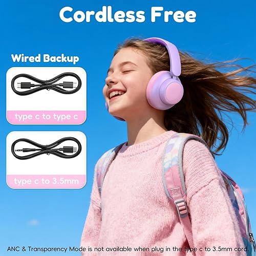 [Wireless & Wired Mode]Powered by Bluetooth 6.0 tech, these kids noise cancelling headphones can expand coverage, reducing signal loss and enjoy uninterrupted audio freedom. We offer a usb-c and a 3.5mm audio cable to adapt to various electronics. (Note: ANC is not available for 3.5mm cable.)