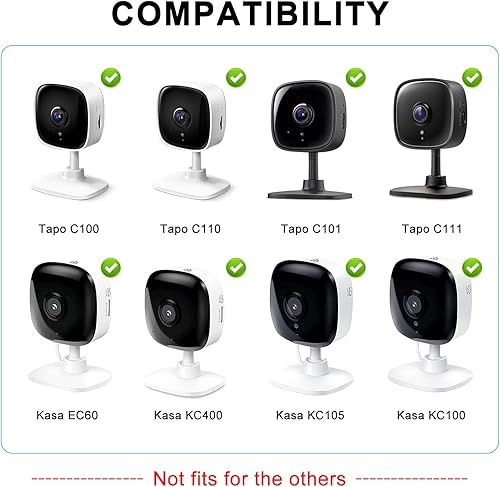 2 Pack White Camera Adhesive Wall Mount Bracket - This window security camera mount is compatible with TP-Link Indoor Security Camera C100/C101/C110/C111, the wall mount holder also fit for Kasa Smart Security Camera EC60/KC400/KC100/KC105(Camera not included). NOT fit for any other brand/model.