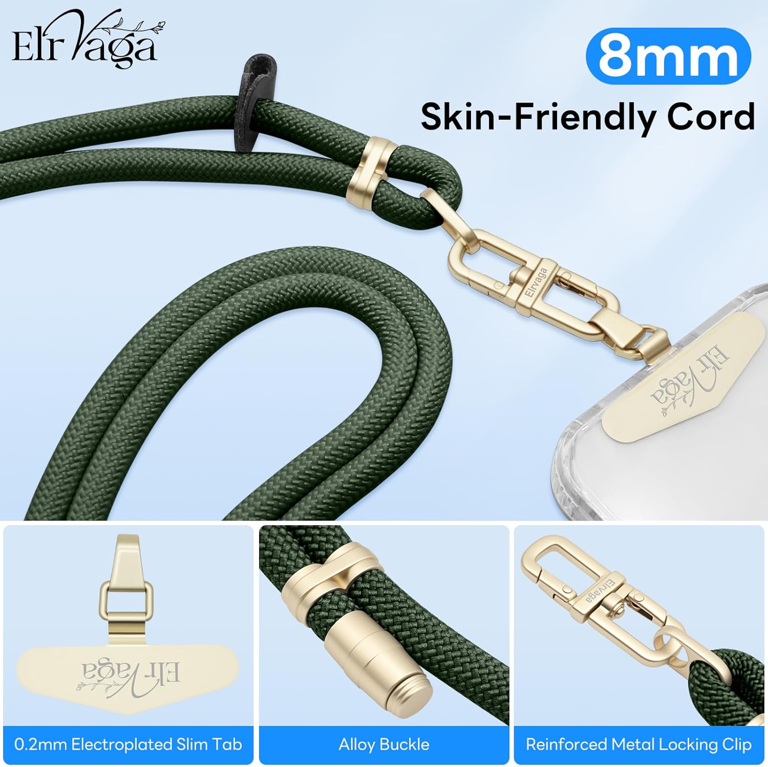 Adjustable Anti-Theft Phone Lanyard Neck & Crossbody Strap with 0.2mm Metal Tab & Comfort-Fit 8mm Rope (Khaki)(Dark Green)