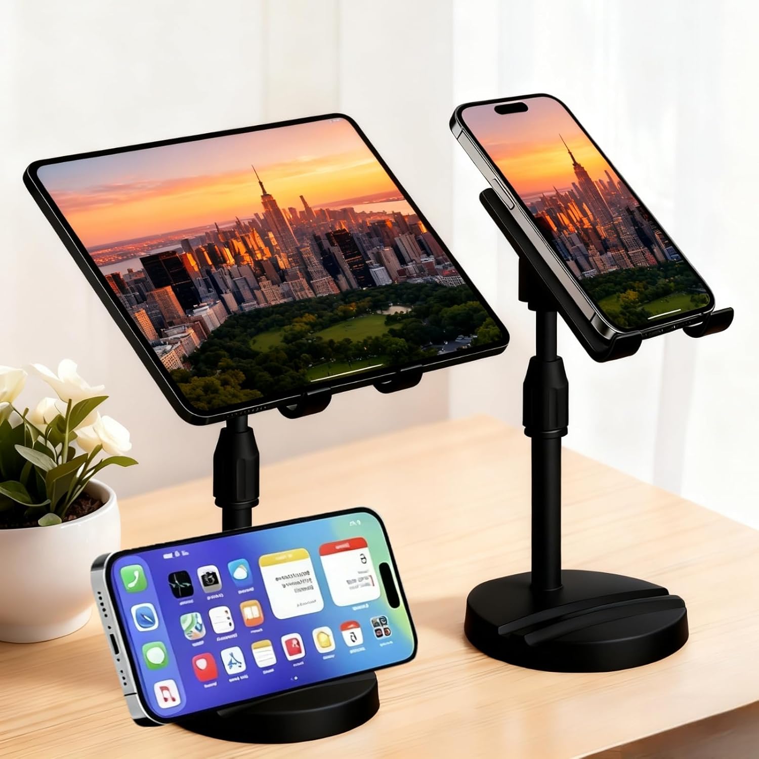 【Weighted Metal Base】In order to ensure the stability of the phone holder and ipad stand, this stand base is made of weighted high-quality metal, placed on the table for face-to-face communication with family members, watching movies, reading recipes in the kitchen, and taking selfies. It is also available as a tool for video recording. It perfectly increases the stability and non-slip of the stand, and also better protects the desktop from scratches.