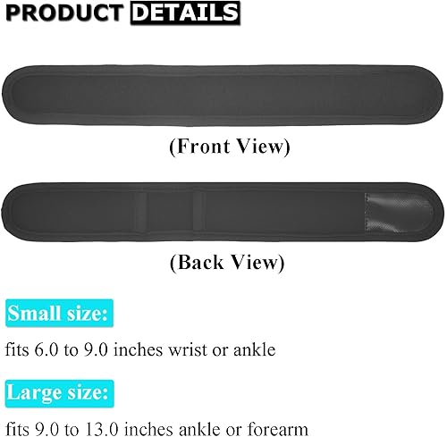 Two size for option, small sized one fits 6.0 to 9.0 inches wrist or ankle, large sized one fits 9.0 to 13.0 inches ankle or forearm