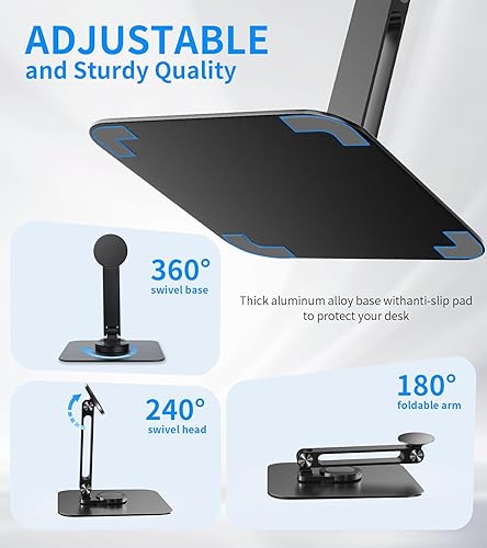 【Swivel Base】: The thickened aluminum alloy base supports 360° rotation, and the folding arm can be folded 180°, providing unparalleled adjustment functions, convenient for typing or displaying, and will not miss any viewing angle, which is perfect for video, calls, work or study. And because of the strong magnetism, the fixation is super strong, and monitors/tablets smaller than 17 inches can be placed in portrait or landscape orientation.