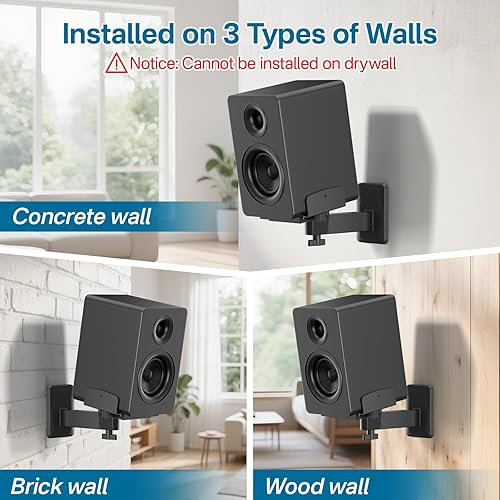 Space-Saving Design: The wall mount speaker bracket is built to be mounted on studs, concrete, or brick walls (Not for drywall). Free up your space while maintaining a clean, modern aesthetic, ideal for home theaters, music studios, or any space demanding both style and uncompromised sound quality.
