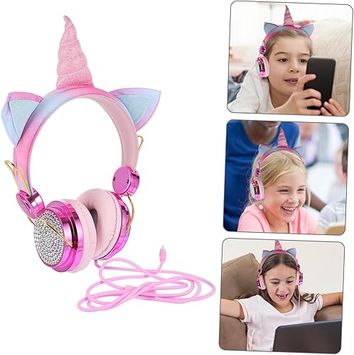 Adorable Cartoon Boys and Girls Headphones Rhinestone Gaming Headset Microphone Volume Limit Headset for Cellphone Office Computer