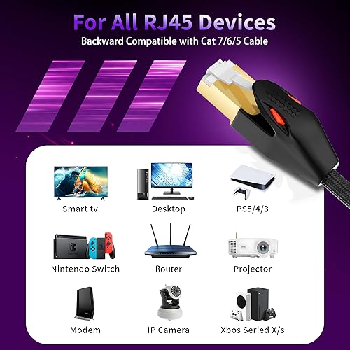 Compatible Devices: Compatible with PS5/PS4/PS3, Xbox 360/One, PCs, laptops, printers, routers, switches, NAS, and more. Backward compatible with Cat7/Cat6e/Cat6/Cat5e/Cat5 standards See more