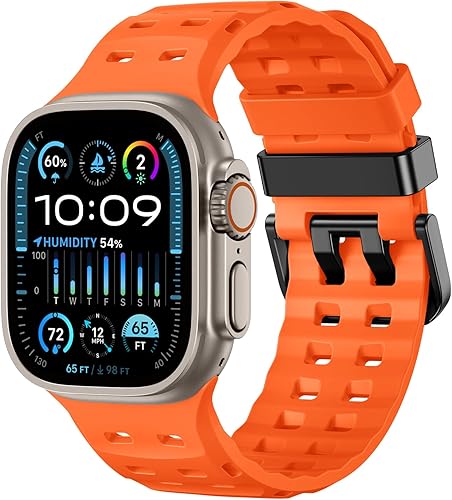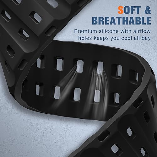【Premium Comfort for All-Day Wear】Crafted with ultra-soft silicone that's 30% lighter than regular bands, this breathable apple watch ultra 3 band features airflow holes to keep skin cool. Sweat-proof and water-resistant construction ensures comfort during intense workouts while maintaining featherlight flexibility for daily office wear