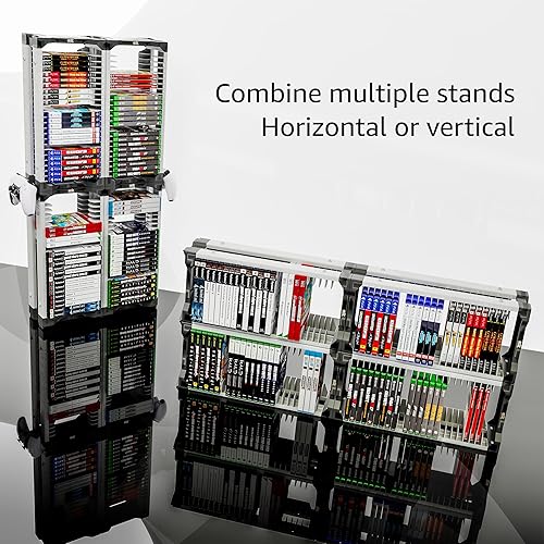 Game organizers and storage : Keep your games in one place with this video game organizer. The game holder stand can be stacked as a horizontal game holder or vertical. Making the perfect game shelf for all of your media.