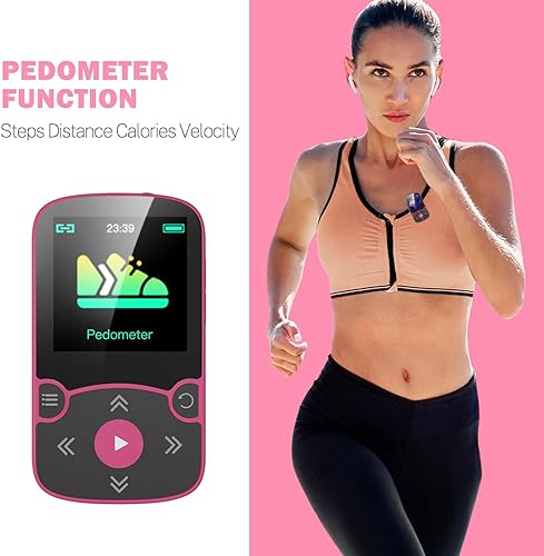 AGPTEK 64GB MP3 Player with Clip, Bluetooth 5.3 Lossless Sound with FM Radio, Voice Recorder for Sport Running, Supports up to 128GB TF Card,Rose Red(Rose Red,64GB)