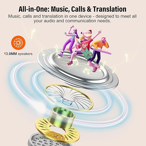 ENC Noise Cancellation: The translation headphones features an advanced ENC noise-canceling microphone that effectively blocks ambient noise, ensuring clear and natural voice translation in multilingual conversations. Whether at international conferences or while traveling, translations remain precise and easy to understand. The 13mm composite driver delivers deep bass and pure sound, enhancing cross-language communication with an immersive experience for smoother, more effortless conversations.