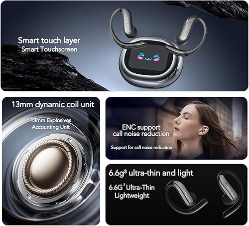 【Smart Screen】: The innovative LCD smart screen greatly improves your convenience, allowing you to switch songs, adjust the volume, and even take photos with your phone. The screen can switch between English, Spanish, and German multilingual subtitles in seconds, giving you a perfect experience. You don't need to take out your phone or take off your headphones, just touch your fingertips to control the overall situation.