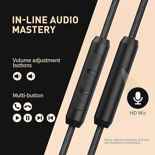 Built-in Microphone & Effortless Controls: Conveniently adjust the volume with the in-line controls, and the high-definition microphone of the head phones with wire guarantees clear voice pickup, enhancing your communication experience. Please note that the volume control button on the in-line controls may not be compatible with computers.