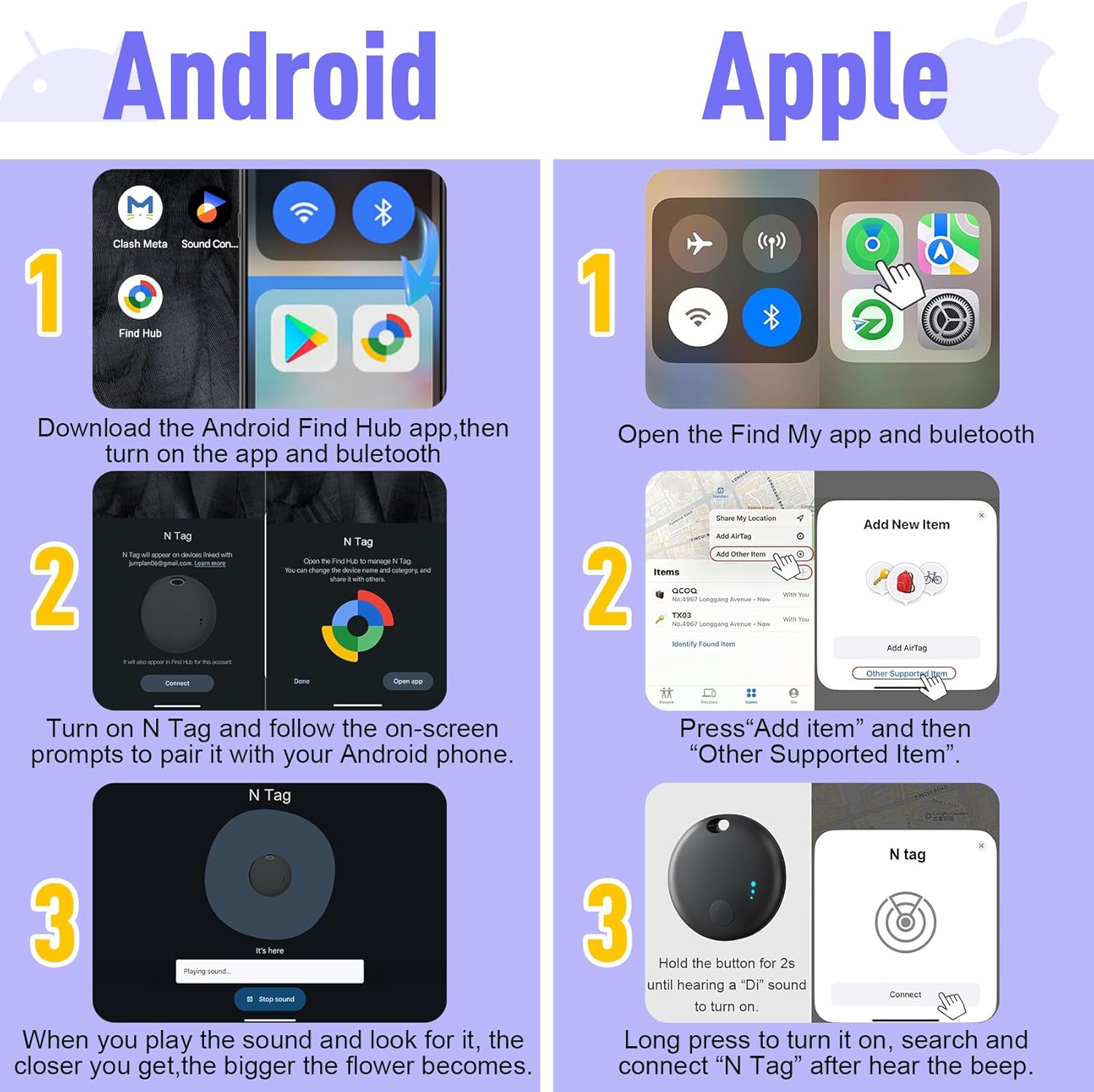 Compatible Devices: Compatible with iOS Find My or Google Find Hub App, Tablet