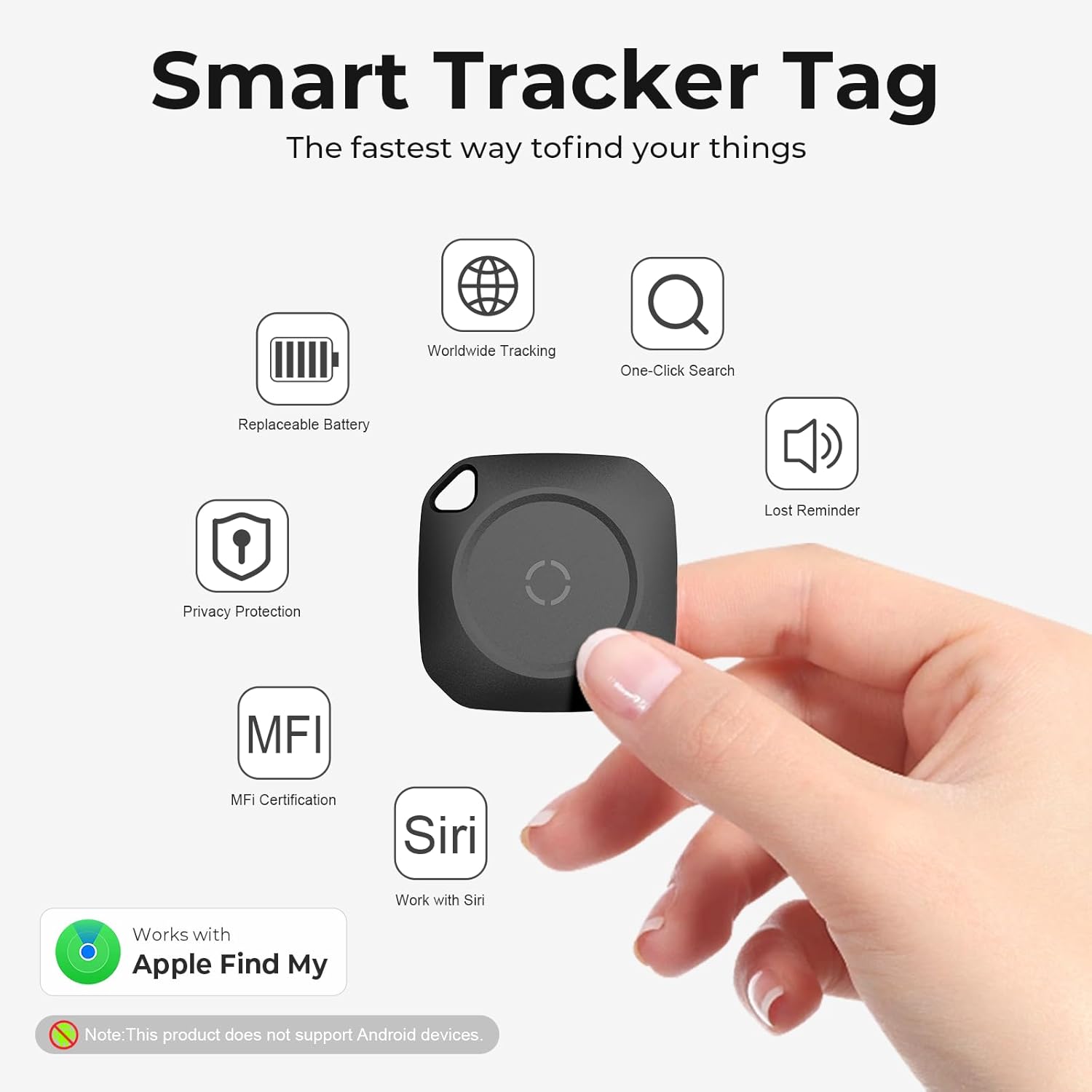 Comment on "Air Tracker Tags-4 Pack Tag Set, Compatible with Apple Find My App (iOS Only), Key Finder and Item Tracker Smart Tag for Keys, Bags, Luggage, Pets, Wallet,Loud Beep,Replaceable Batteries (White)(Black,4 Pack)"