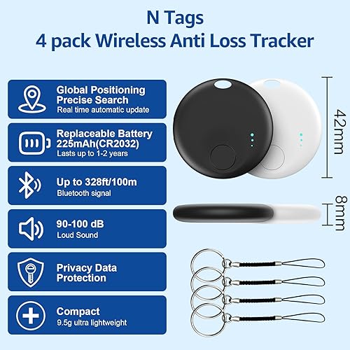 ✅[GREAT VALUE COMPACT ALTERNATIVE TO THE BIG BRANDS] This Android compatible air tracker tags for Android phones is a smart way to keep tabs on your things! Being Google Certified and working with the Google's Find Hub Device app is a big plus for seamless integration. Air smart tags-4 pack android. The small tracker tag easy to carry, small enough to hide of needed. Functional, sleek design, and small enough to fit anywhere you need it. You can hide the wallet finder tracker in your personal items, so if they are stolen, the person doesn't know your stuff is being tracked. Fairly accurate GPS. The find my keys device is a fantastic addition for anyone prone to misplacing their belongings.