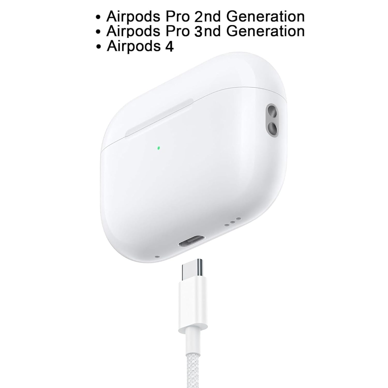 AirPods Pro 3 / AirPods 4 Charger Cable (USB-C) – 6FT braided USB-C to USB-C charging cord built for the newest USB-C charging cases; plug straight into your USB-C charger/power bank; also works with AirPods Pro 2 (USB-C).
