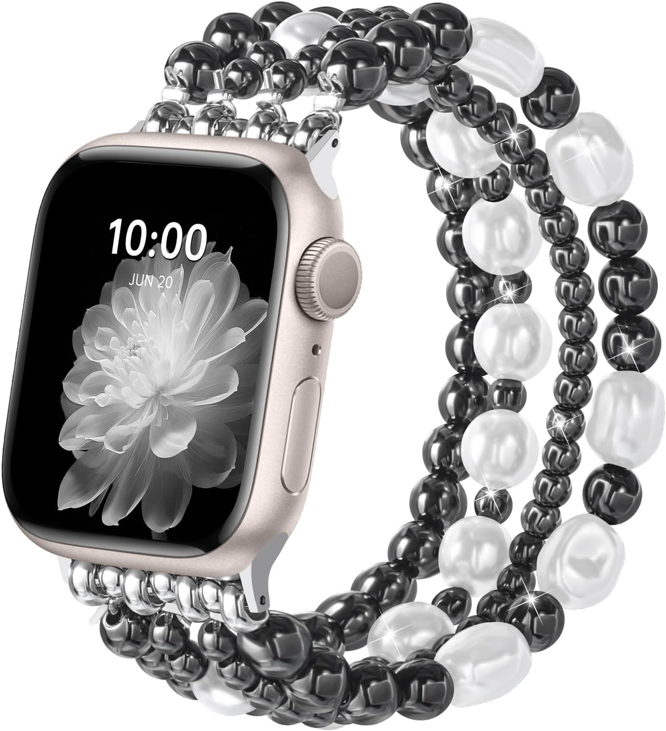 Perfect Fit: AIRSPO Apple watch bands for women have 2 size options: S: Fit for 5.3"-6.2" wrist; L: Fit for 6.3"-7.3" wrist. The bead bracelet is elastic, suitable for all kinds of wristwear, and suitable for all ages making you elegant and charming every moment.