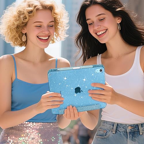 Akkerds for iPad A16 Case 11th Generation 11 Inch 2025 - for iPad 10th Generation Case 10.9 Inch 2022 with Pencil Holder - Slim Trifold Stand Protective Cover with Crystal Clear PC Back - Pink(Skyblue)