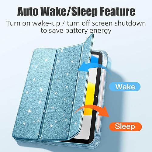 【Precise Cutouts】 Full access to all controls and features(Cameras, Speaker, Ports and Touch ID) without removing the case. When your tablet is opened or closed, the magnetic strip automatically wakes or puts it to sleep. It protects and prolongs the life of your 10th gen ipad case
