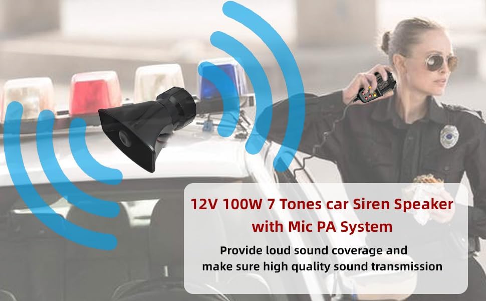 EASY INSTALLATIO12V 100W 7-tone emergency vehicle warning speaker, blackN: Comes with mounting hardware and wiring harness for straightforward setup in emergency vehicles