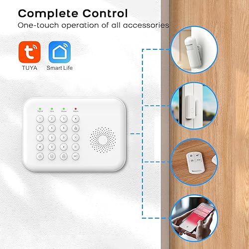 【App Remote Control+No Monthly Fee】 This home alarm system Compatible with "Tuya" and "Smart Life " App, When someone tries to open a door or window, the sensors will immediately detect it and the alarm will sound a 120dB siren, as well as sending an immediate alert to your mobile phone.Remotely arm or disarm the system