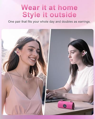 Elegant Jewelry-Style Design with Purse Charging Case:These aren't just earphones; they're a fashion statement. Featuring a beautiful butterfly ear clip design that looks like delicate jewelry, they elevate any outfit. The unique charging case mimics a chic purse, complete with a digital display that clearly shows battery levels. It's a perfect blend of style and function, designed for the modern woman.