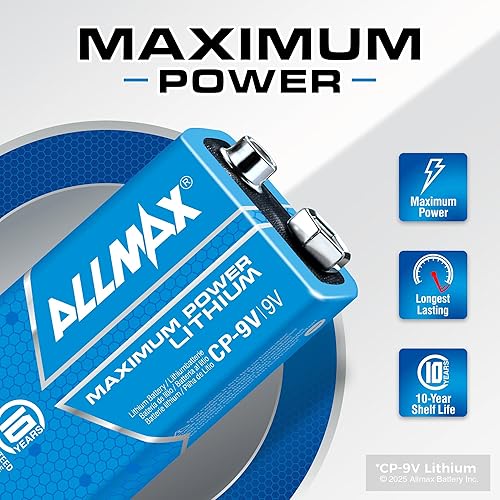 ★ 10-Year Shelf Life – Allmax 9V Lithium Batteries are always fresh and maintain power for up to 10 years in proper storage. This makes Allmax batteries the perfect choice for long-term storage and emergency preparedness kits.