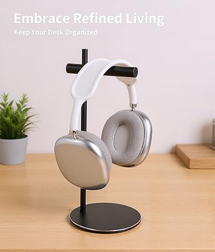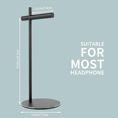 Aluminum Alloy Headphone Stand for Desk with Non-Slip Base - Universal headset stand Compatible with Over-Ear, On-Ear and Neckband Headphones (Black)(Black)