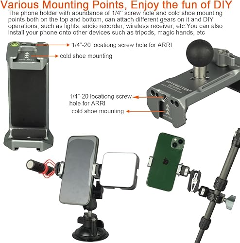 【Unparalleled Expandability, Quick Release Design】This DEKEENSTAR 20mm ball mount phone holder offers unparalleled expandability by providing two 1/4”-20 screw holes to connect magic arms/tripods/ballheads and 2 cold shoe mount to attach LED light panels or microphones. The Arca-Swiss rail base enables quick mount and release of the camera tripod ball head.