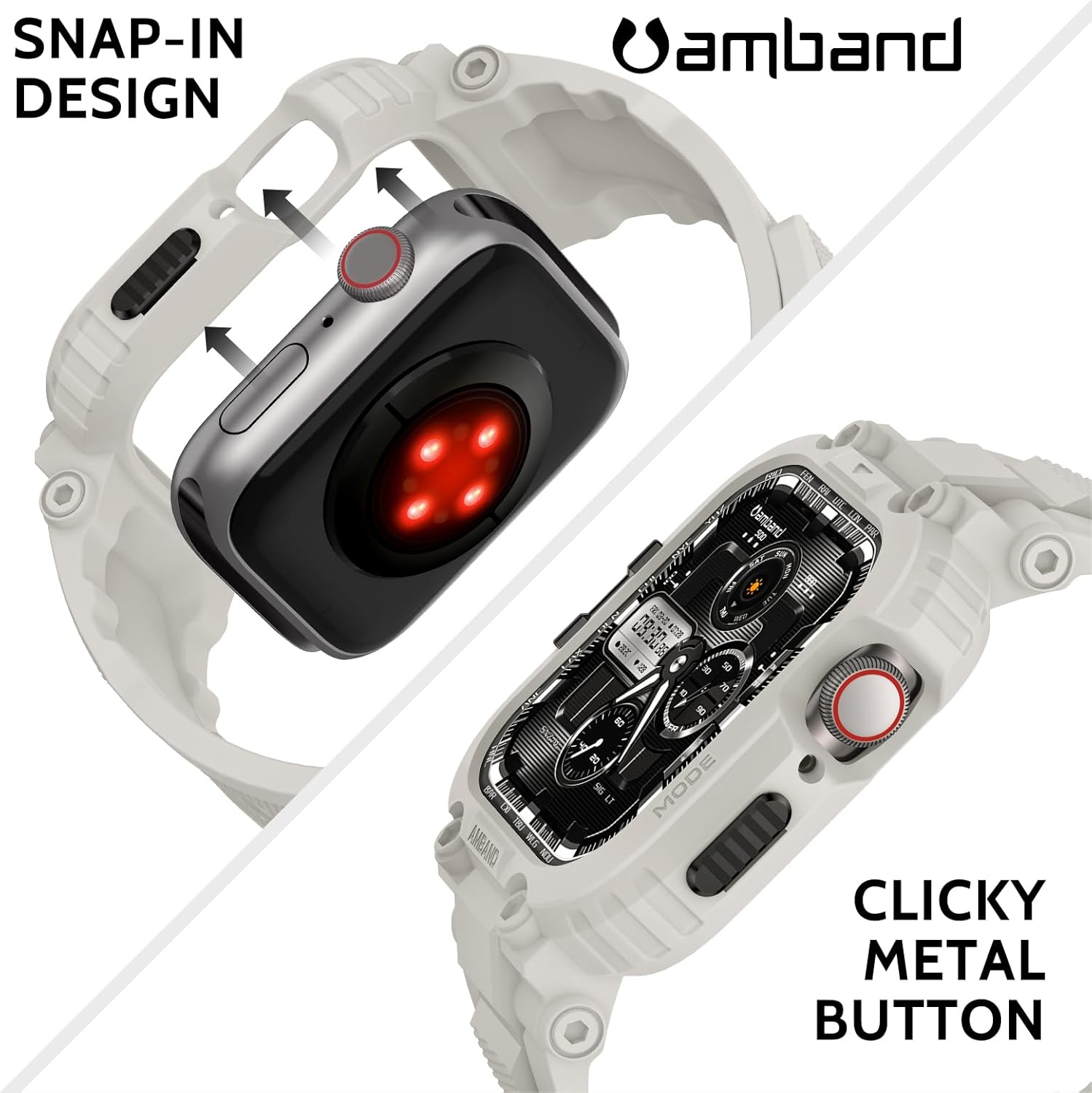 Comment on "amBand M1 Sport Case Band for Apple Watch Ultra 3/2/1 & SE 3/2/1 & Series 11 10 9 8 7 6 5 4 3 49mm 46mm 45mm 44mm 42mm 41mm 40mm 38mm, Shockproof & Scratch Resistant Rugged Bumper for Men(Sand White,42/44/45mm)"