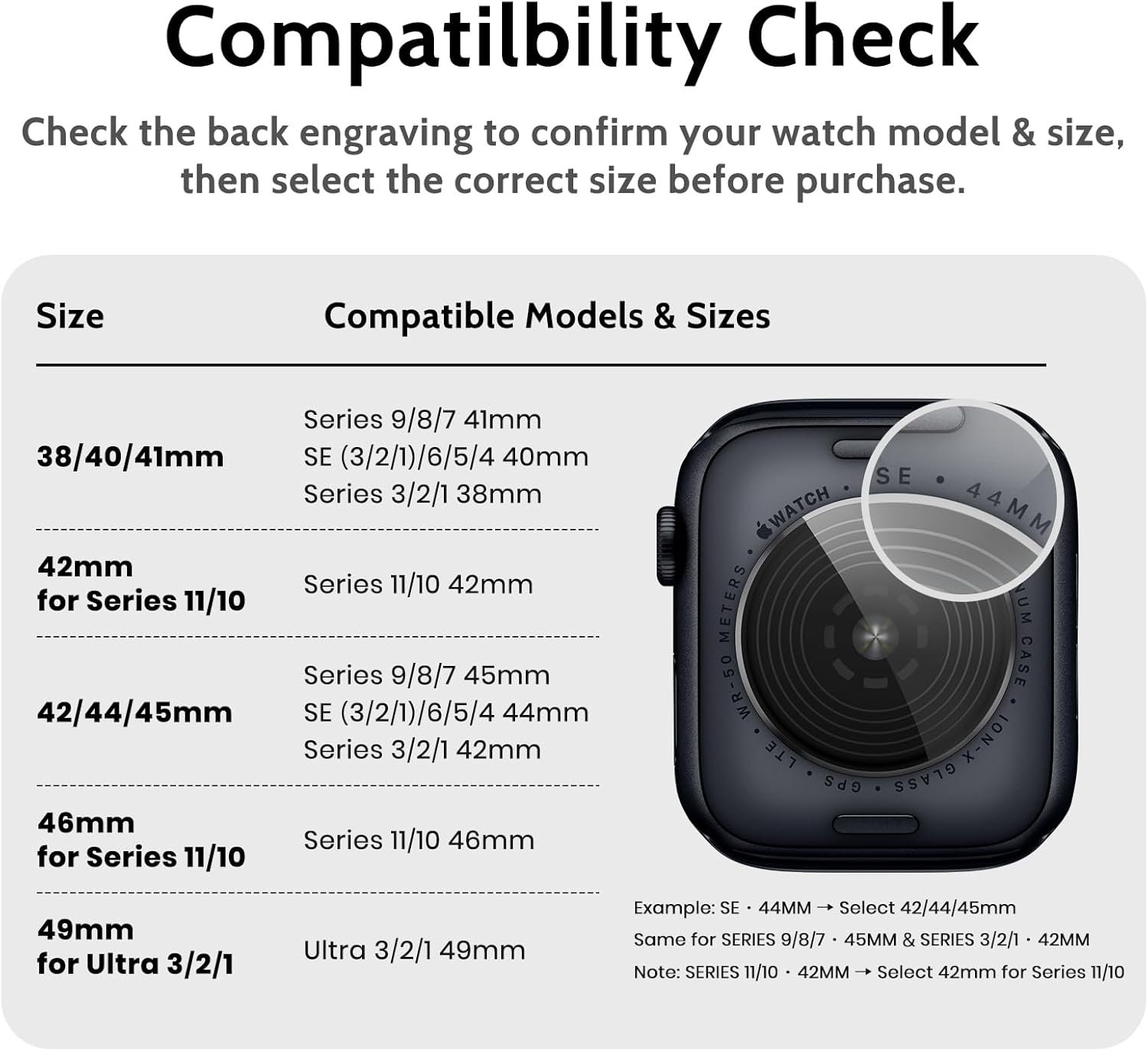 Compatibility Check: Designed for Apple Watch Ultra 3/2/1 49mm. Fits wrist sizes ranging from 5.9" (150mm) to 8.3" (210mm).