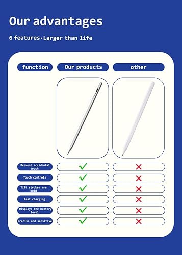 Precise and sensitive: Stylus Pen has premium 1.5 mm nib, sensitive touch technology provides better accuracy and compatibility without delays and disconnections, allowing you to create with maximum precision at all times. There is magnetic suction