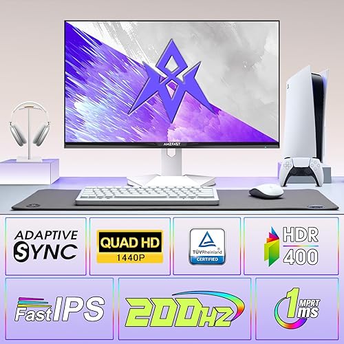 Amzfast 24 Inch Gaming Monitor 200Hz FHD 1080p Fast IPS Computer Monitor, 110% sRGB 1ms HDR Support Adaptive Sync, Eye Care VESA Mount HDMI 2.0 | Display Port 1.4 White Monitor, AMZG24X1W(White,27Inch,WQHD/200Hz/FAST IPS)