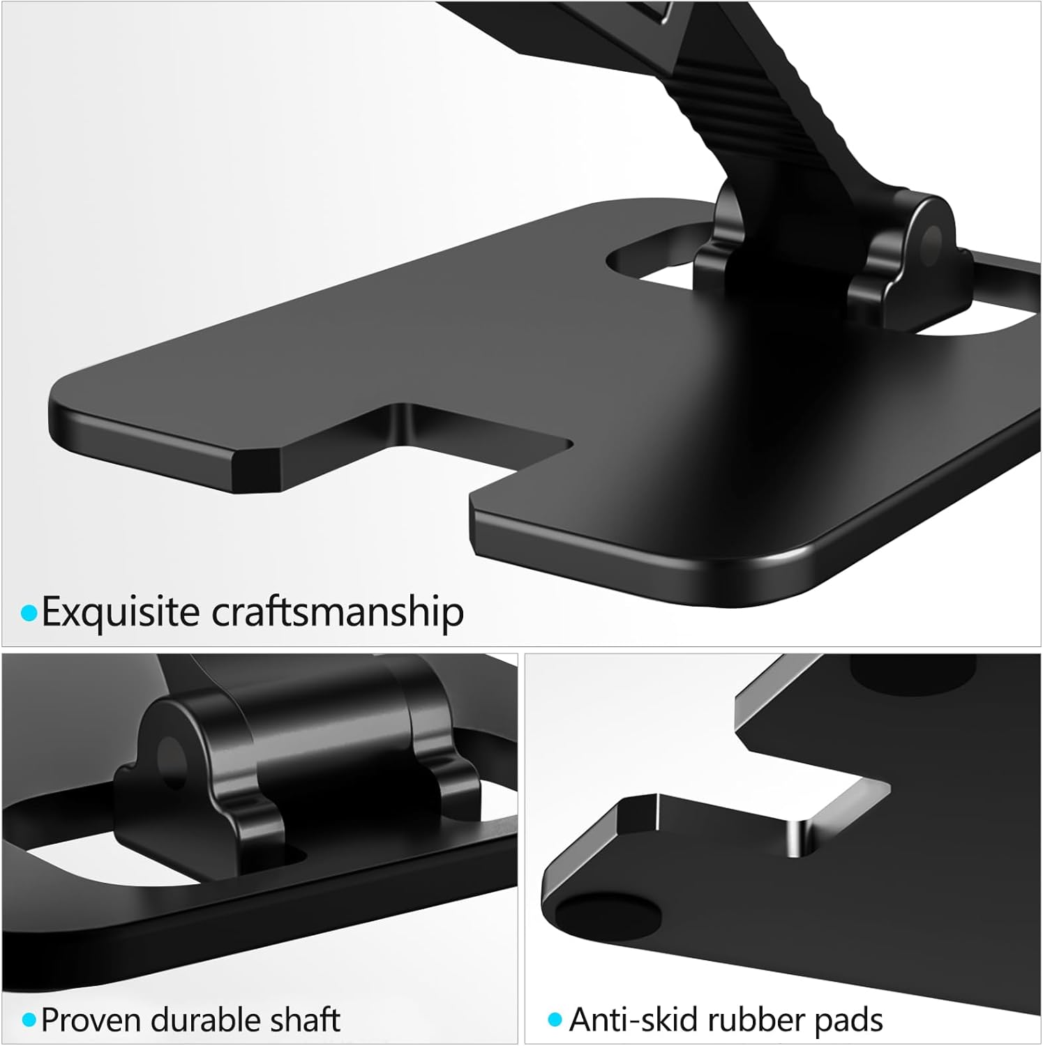 【Durable Design】The mobile phone stand is made of high quality premium aluminum, Its durable structure can withstand daily use, stays firmly in place, hold your phone steadily, no worry any wobble at all. The rubber pads can protect your phone from any scratching and sliding.
