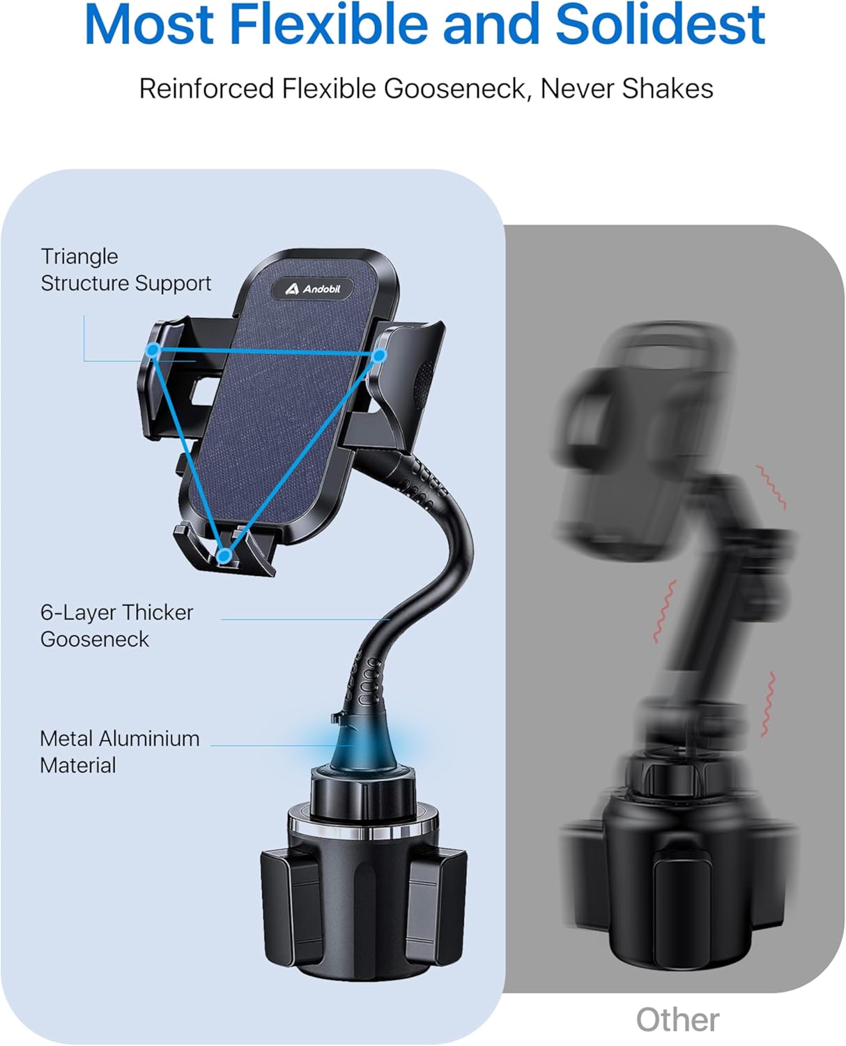 Comment on "andobil Military-Grade Cup Phone Holder for Car/Truck, [2025 Enhanced] 13" 360° Adjustable Gooseneck w/Anti-Shake Car Mount, Universal Car Phone Holder for iPhone/Samsung All 4.0-7.0" Devices, Blue(Blue)"