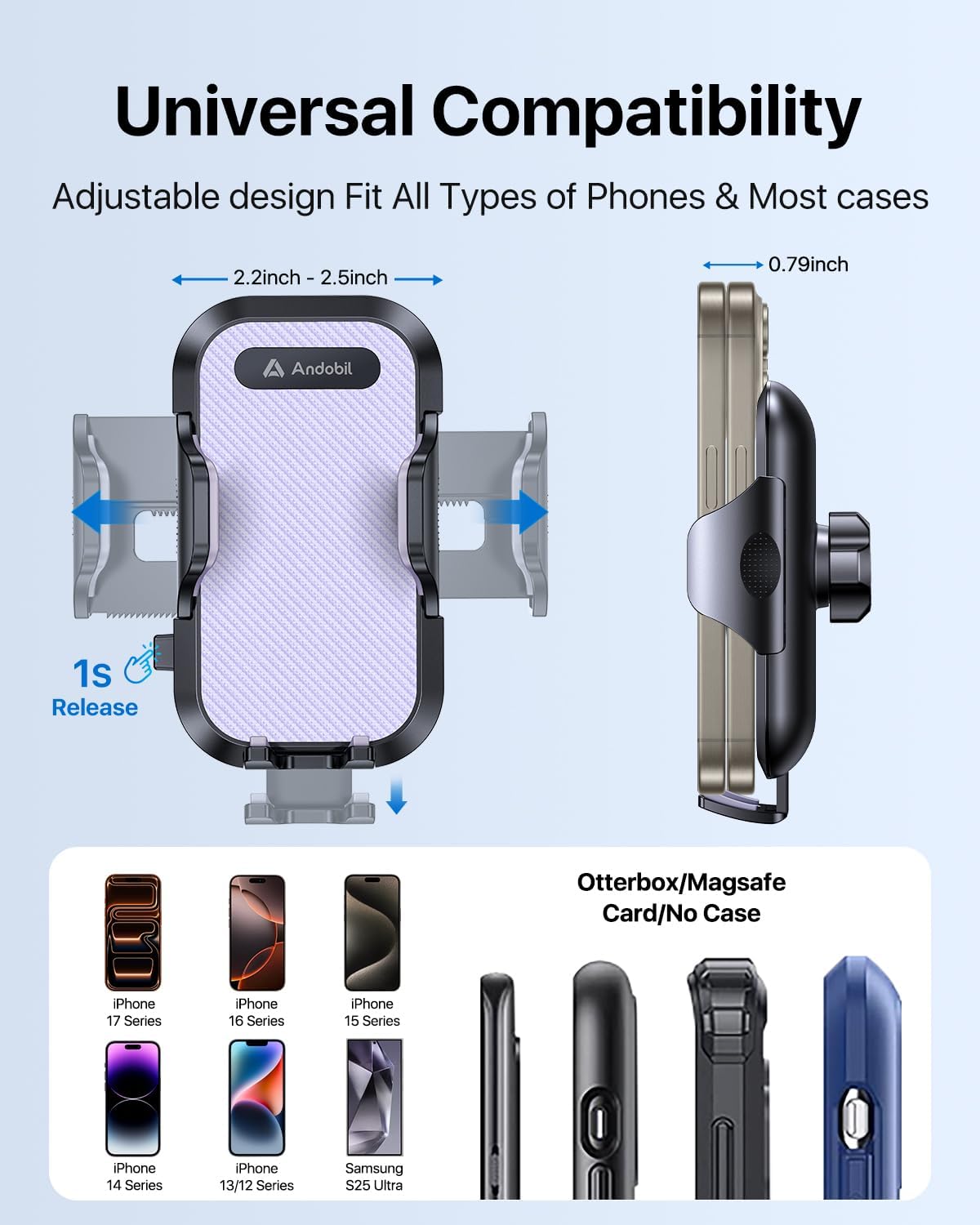 Comment on "andobil Phone Holders for Your Car - Air Vent Phone Mount, Ultra-Stable Metal Clip with Anti-Shake & 360° Rotation, Universal Car Mount Fit iPhone 16/15/14/13/12 Pro Max/Android/Samsung Gary(Purple)"