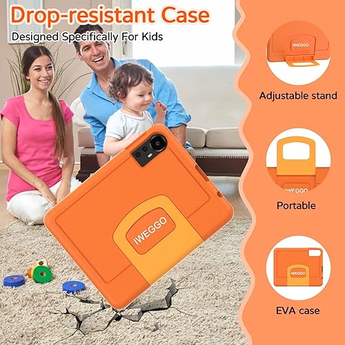 Android 15 Kids Tablet with EVA Case, 10 inch Tablet for Kids, 20GB RAM+128GB ROM/ MAX 2TB, 1280*800 IPS HD Eye-care Touch Screen, 2.0GHz Quad-core Toddler Tablets, 5G WiFi6, Widevine L1 Orange(Orange)