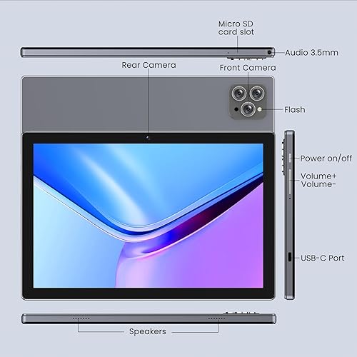 Vibrant HD Display: This Big tablet 10 inch boasts an 800*1280 IPS screen delivering crisp visuals and true-to-life colors. Enjoy stunning image quality that makes videos, games, and ebooks pop. With loud, clear speakers, the android tablet creates an immersive entertainment experience perfect for relaxation. The eye-comfort display keeps viewing pleasant during extended use.