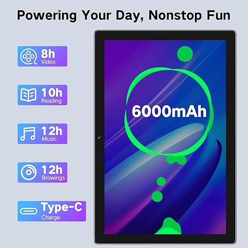 All-Day Power: This electronics tablet's 6000mAh battery keeps you going for hours of streaming and browsing. Charges with modern USB-C - no more flipping cables. Smart power saving gives you more time between charges. Stay productive and entertained wherever you go!