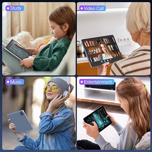 A Vibrant,Eye-Comfort Screen - Protect your family's eyes without sacrificing a great view. 10 In tablet features a crisp IPS HD display with vivid colors and wide viewing angles, perfect for sharing cartoons with boy and girls or watching movies together. The brightness adjustment setting technology significantly reduces harmful light and minimizes screen flicker,making it safer for your late-night reading
