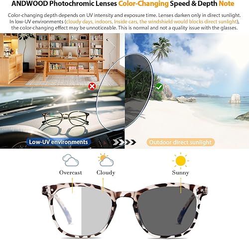 ANDWOOD Blue Light Blocking Glasses Women Men Computer Small Face Frame Bluelight Blocker Teens(Leopard | Photochromic & Anti-blue Light Lens)