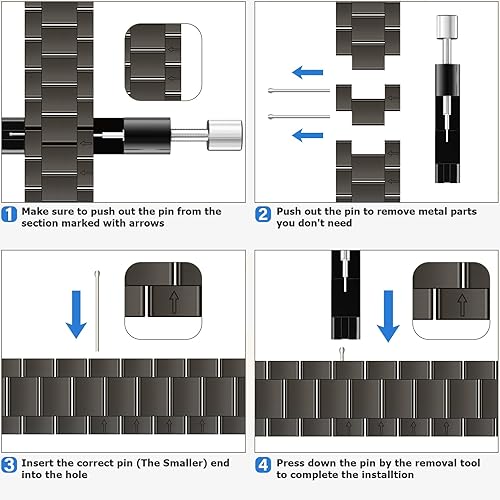 【Adjustable Size】 Fit 6.7"-9.4" (170 mm - 240 mm) wrist, specially designed for men and women. The length of the band(Without the watch) is 7.6 ''(192mm). Comes with removal tool which makes you possible to adjust the band length suit for yourself(Up to 8 links can be removed).